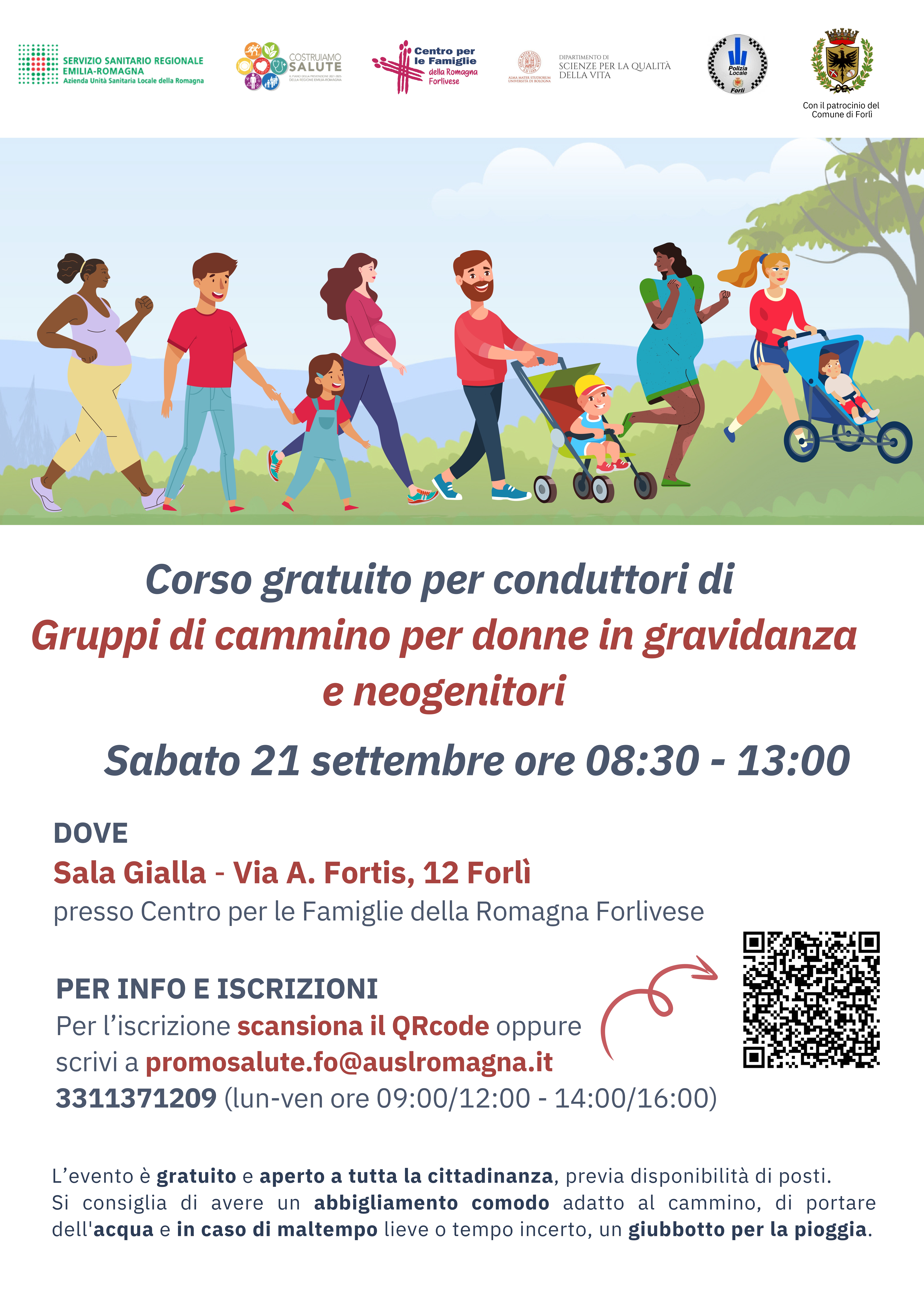 Per maggiori informazioni e per iscriversi al corso è possibile scrivere a promosalute.fo@auslromagnalit , telefonare al numero 3311371209 dal lunedì al venerdì dalle 9 alle 12 e dalle 14 alle 16. Per l’iscrizione è possibile anche utilizzare il qrcode presente sulla locandina dell’evento.
