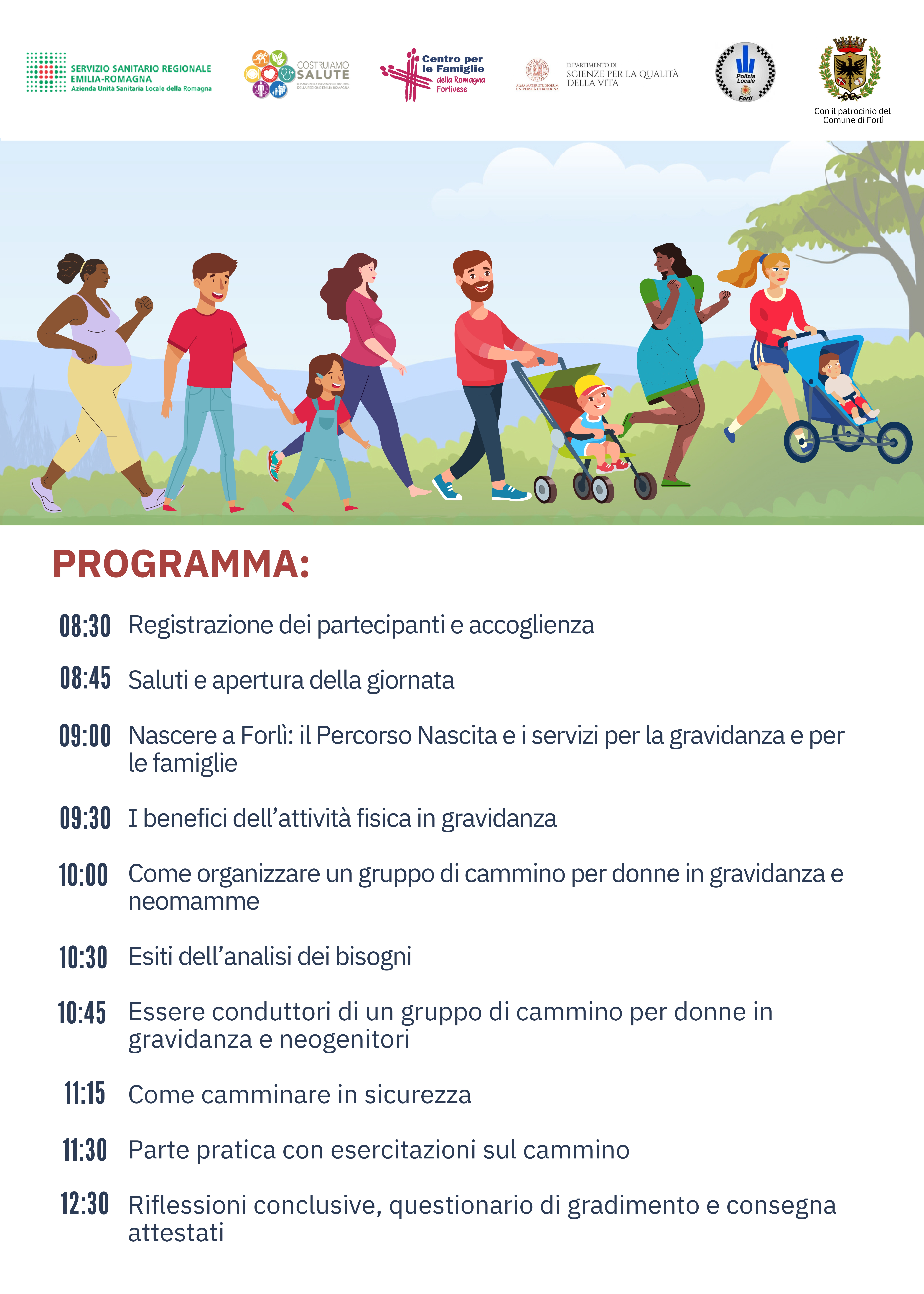 Il corso, promosso dalla U.O. Salute Donna Infanzia in collaborazione con il Centro per Le Famiglie della Romagna Forlivese, il Dipartimento di sanità pubblica, l’Università di Bologna – Dipartimento Scienze per la qualità della vita, la Polizia Municipale di Forlì e con il patrocinio del Comune, si inserisce nell’ambito delle iniziative locali di promozione della salute delle donne e dei bambini nei primi 1000 giorni di vita.